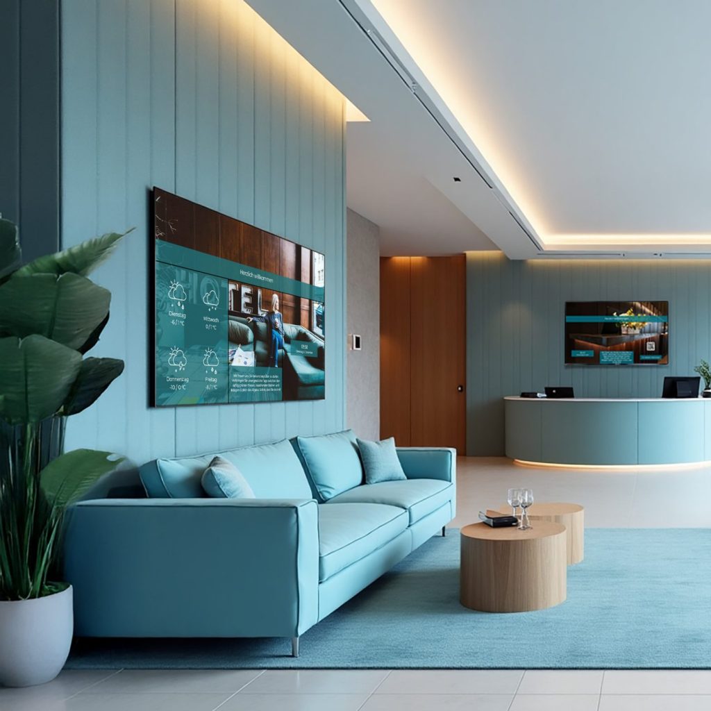 Der Infokanal macht Informationen genau dort sichtbar, wo Gäste sie wahrnehmen: an der Rezeption, in der Lobby, im Spa oder im Restaurant. Statt Aushänge zu drucken und regelmäßig auszutauschen, laufen Inhalte digital, aktuell, mehrsprachig und visuell ansprechend. Das spart Zeit, reduziert Papier und schafft gleichzeitig zusätzliche Flächen für Angebote und Hinweise.